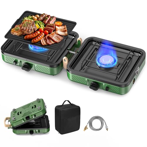 Offizielle ProduktbezeichnungCampingkocher 2 Flammig, Tragbare Collapsible Gaskocher mit Verstellbare Brenner